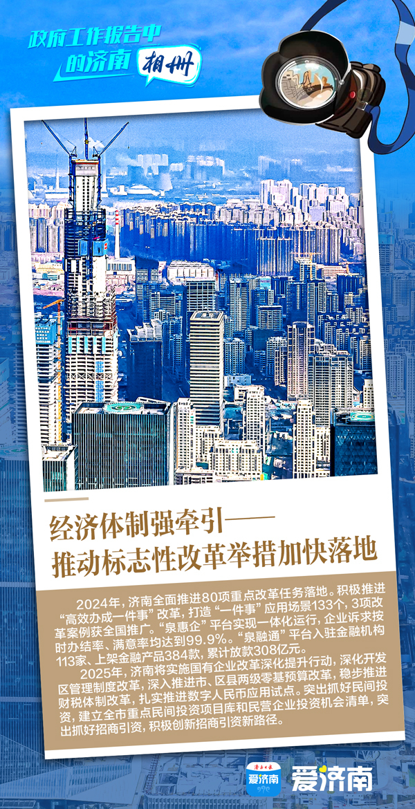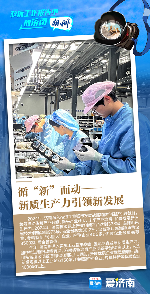 3月5日上午,十四届全国人大三次会议在北京开幕。国务院总理李强作政府工作报告。深读政府工作报告,对照济南发展、济南实践的轨迹,会发现众多“济南实践”与报告契合相通,令人振奋、倍感鼓舞。让我们通过一组济南“相册”了解一下!
