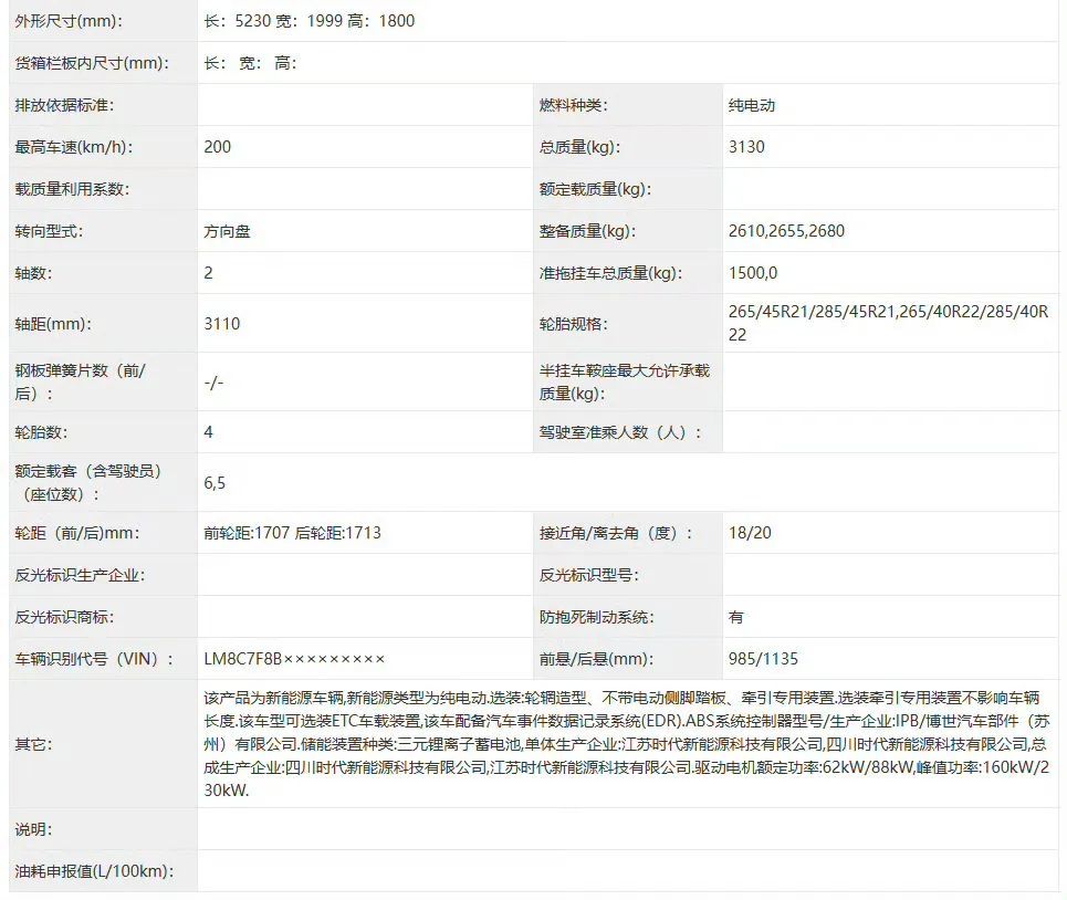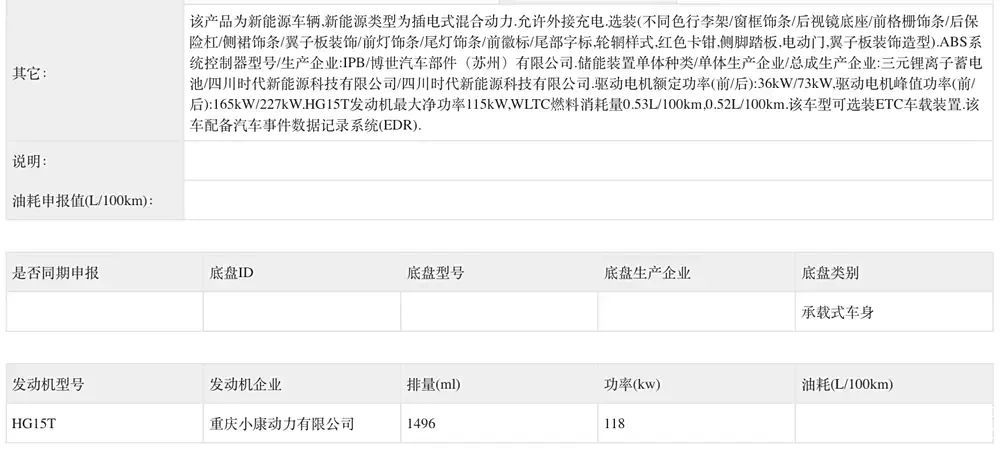 新车型在今年2月就完成了申报,含插电式增程、纯电两种动力,配备宁德时代三元锂离子蓄电池。其中增程版车型还将支持超快充技术,进一步提升了充电便利性。