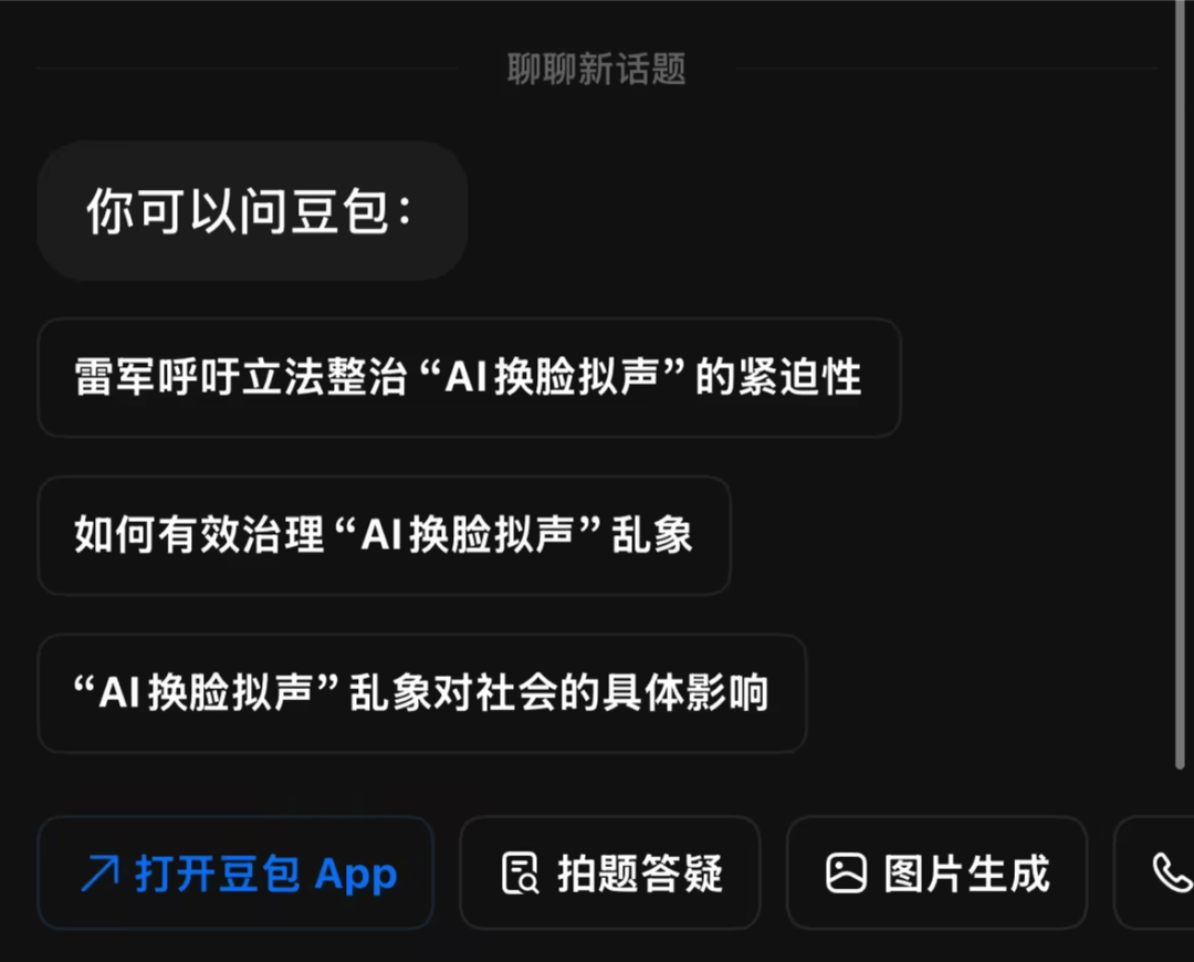 Tech 星球发现,抖音 App 于近期测试接入豆包 App 的 AI 能力。抖音相关负责人对此回应表示,相关能力测试中,主要是希望为用户提供更丰富的 AI 服务。