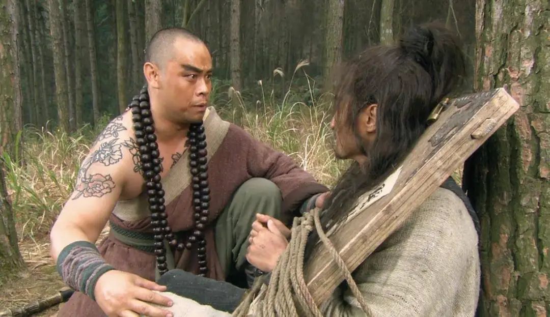 自从林冲押往沧州上了路,细心的鲁智深预感不妙,一路在后面暗暗跟踪,保护林冲。不出所料,在野猪林董超、薛霸将要痛下毒手之时,鲁智深及时现身,搭救了林冲。