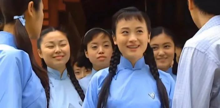 当年的她才21岁,穿着学生装,绑着麻花辫,真的很有民国时期女学生的书卷气。