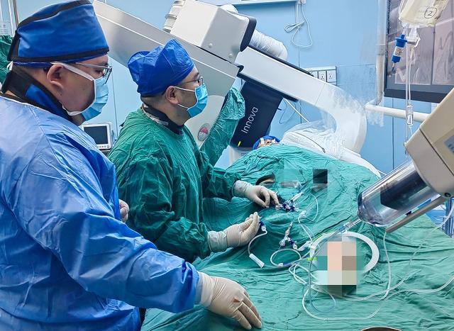 ▲康超文副主任医师团队为患者施行介入手术