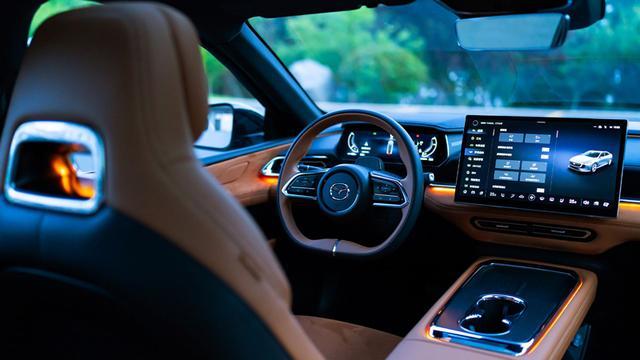 在传统印象中,合资品牌在智能化方面总要比造车新势力更保守些,尤其是软硬件配置的使用和系统优化方面,总是不尽如人意,但马自达EZ-6是个例外。马自达EZ-6配备了10.1英寸高清智慧数字仪表、14.6英寸防眩液晶悬浮屏和50英寸的AR-HUD全息增强显示系统,这种配置放到新势力阵营里也是中上等的存在。而且,这套AR-HUD全息增强显示系统,不仅能提供实时路况导航,还可根据驾驶者的需求,呈现最直观的操作信息。另外,通过高通骁龙8155芯片的加持,让其操作流畅性处于合资品牌第一梯队。