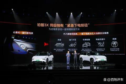 铂智3X还配备紧急下电物理按钮,在系统故障时可通过机械操作切断电源,同时保证转向助力和制动助力,为铂智3X提供多一道安全防线,将安全冗余做到极致。