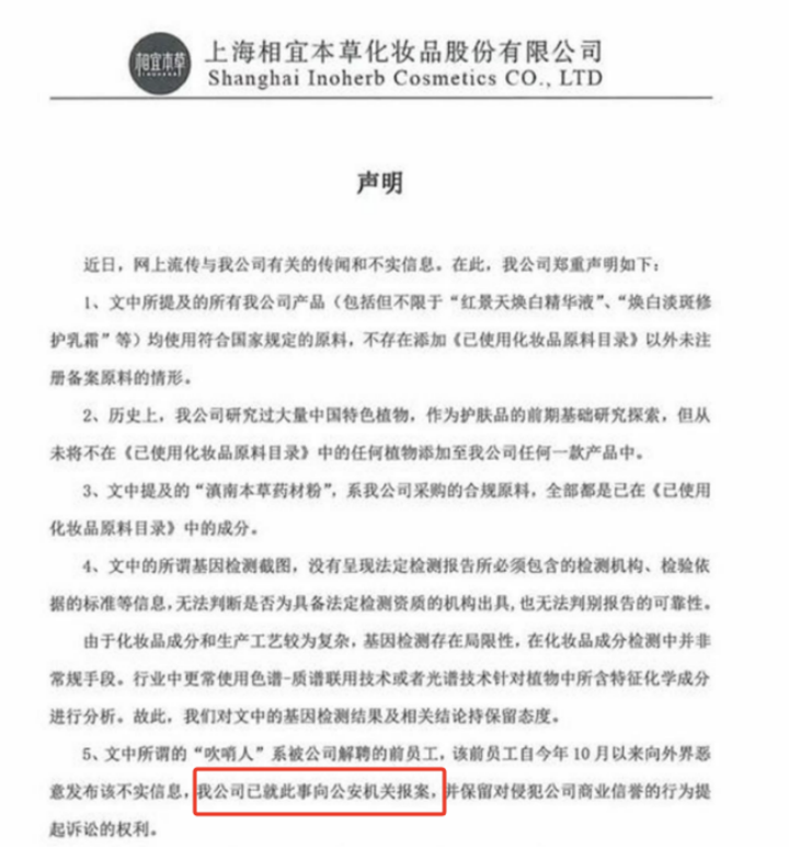 2024年12月,上海相宜本草化妆品股份有限公司(以下简称“相宜本草”)被曝“添加有毒中草药”,随后相宜本草先后发布两份声明。然而,该事件并未因时间的推移而平息。