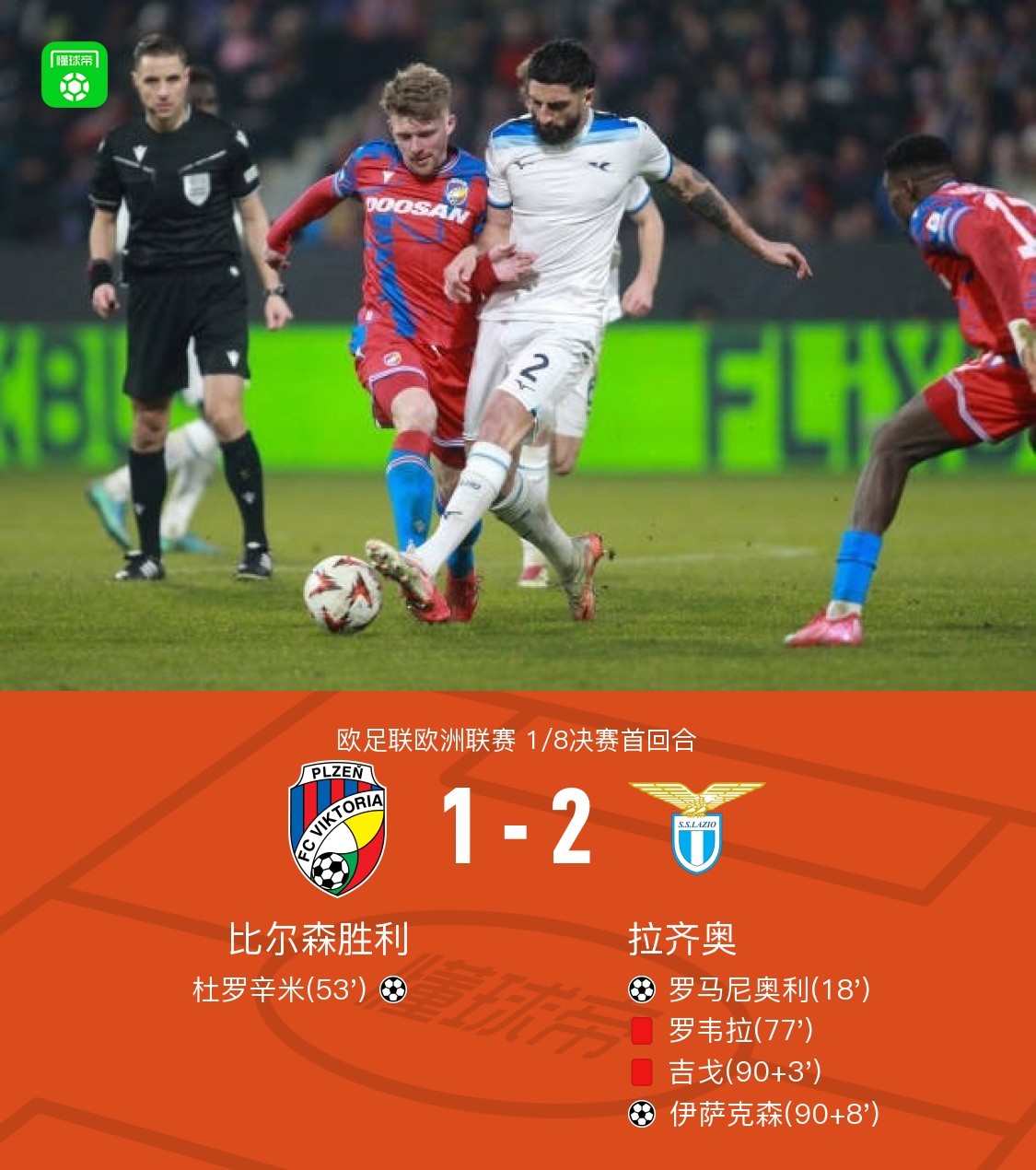 在北京时间3月7日进行的欧足联欧洲联赛1/8决赛首回合中,比尔森胜利与拉齐奥展开激烈较量。比赛中,拉齐奥凭借罗马尼奥利的进球取得领先。随后,比尔森胜利由杜罗辛米扳平比分。尽管拉齐奥在补时阶段被罚下两名球员,但伊萨克森在最后时刻的进球帮助球队再次超出。最终,比尔森胜利以1-2不敌拉齐奥。