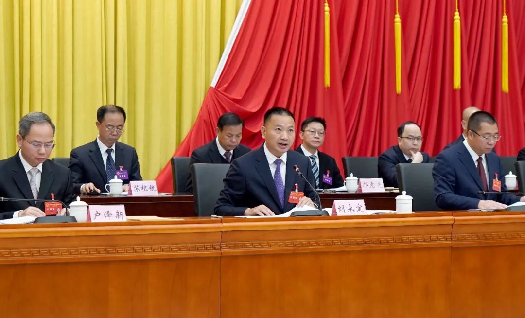 沙田镇党委书记刘永定主持大会,镇党委副书记、镇长叶毅朝代表沙田镇人民政府作《政府工作报告》。镇人大主席卢泽新作人大主席团工作报告。