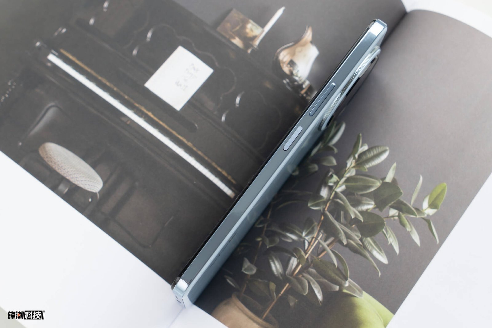 它还提供了三种质感不错的后盖选择,墨玉黑有着仿似矿物的坚固感,钛色则是带来了金属一般的质感,我们手中的这台则是雾凇蓝的配色。这款配色采用了丝光绣影工艺,触感更细腻,还有着随光流动的细腻纹理,在视觉效果上也是下足功夫。
