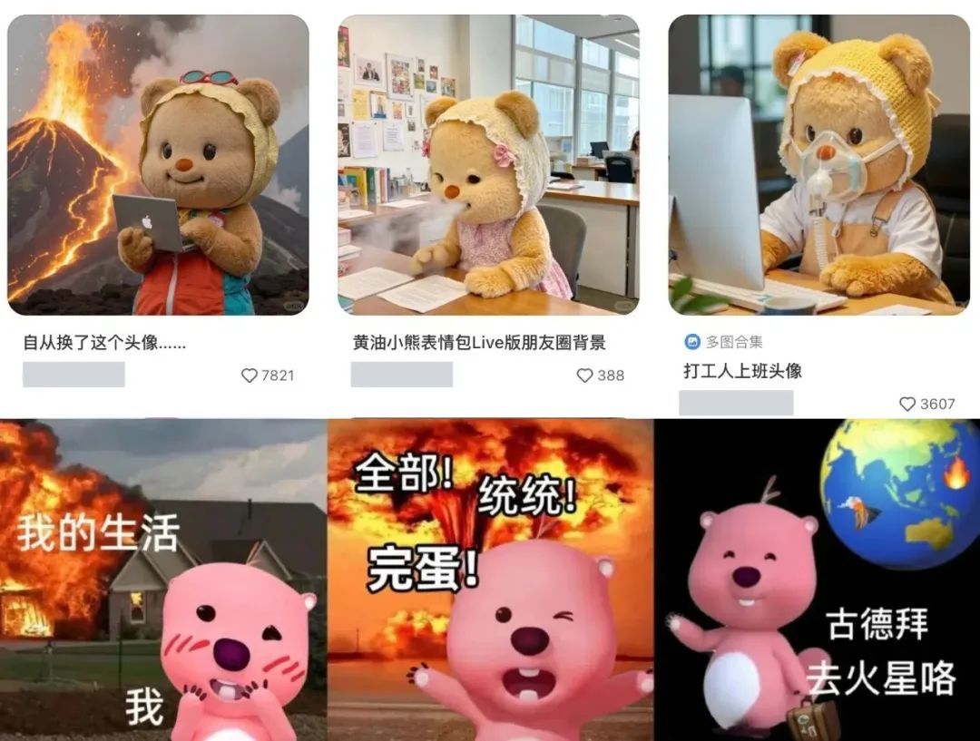 (网友二创黄油小熊和loopy表情包/图源:小红书)