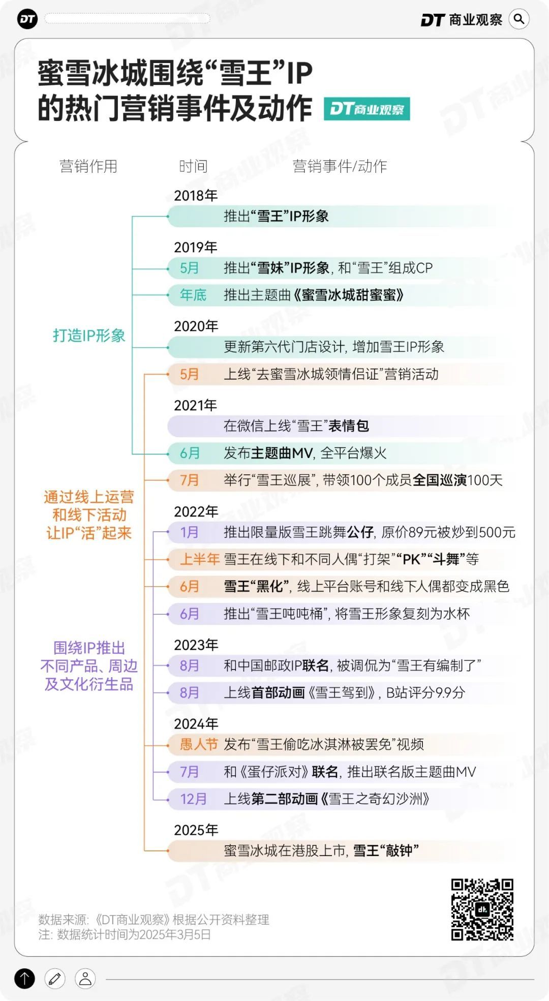 结合蜜雪冰城近7年围绕雪王的热门营销动作来看,雪王的IP形象之所以深入人心,离不开蜜雪冰城在背后的“大力托举”。