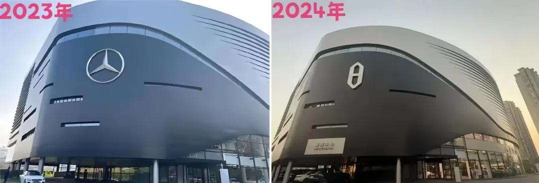 去年年底,《湖南日报》报道了长沙合平路上的一家问界旗舰店举办盛大开业典礼的消息,而这家店,竟是由之前中升集团旗下最大奔驰4S店改造的,连梅赛德斯风格的外墙设计都没换。