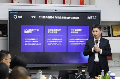 紫光云公司总裁王燕平、首席技术官柳义利、产品与研究开发部副总裁唐元武与科技媒体及行业意见领袖齐聚一堂,探讨了DeepSeek引爆全民热情背景下,企业对云计算的需求已不再局限于基础资源支撑,而是希望使用基于云的人工智能服务,大量云上应用的AI化重构与升级。