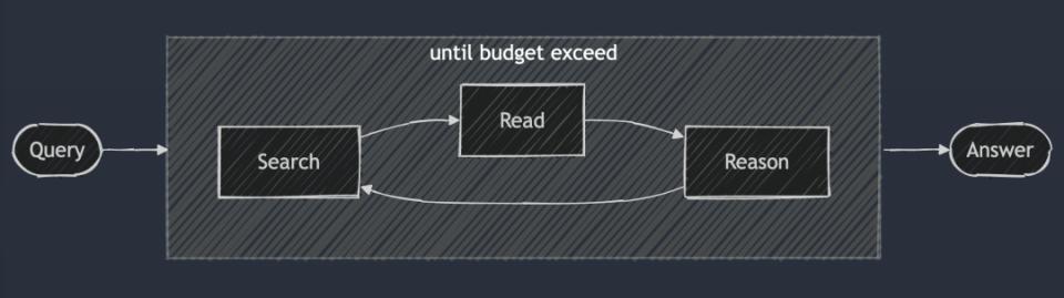 而DeepResearch,根据尝试进行复现的Jina AI(AI搜索产品)的分析,主要也就是搜索、阅读和分析三者间的循环工作。只不过推理需要能判别内容是否充足、搜索到的资料是否对应,再去要求下一轮搜索。