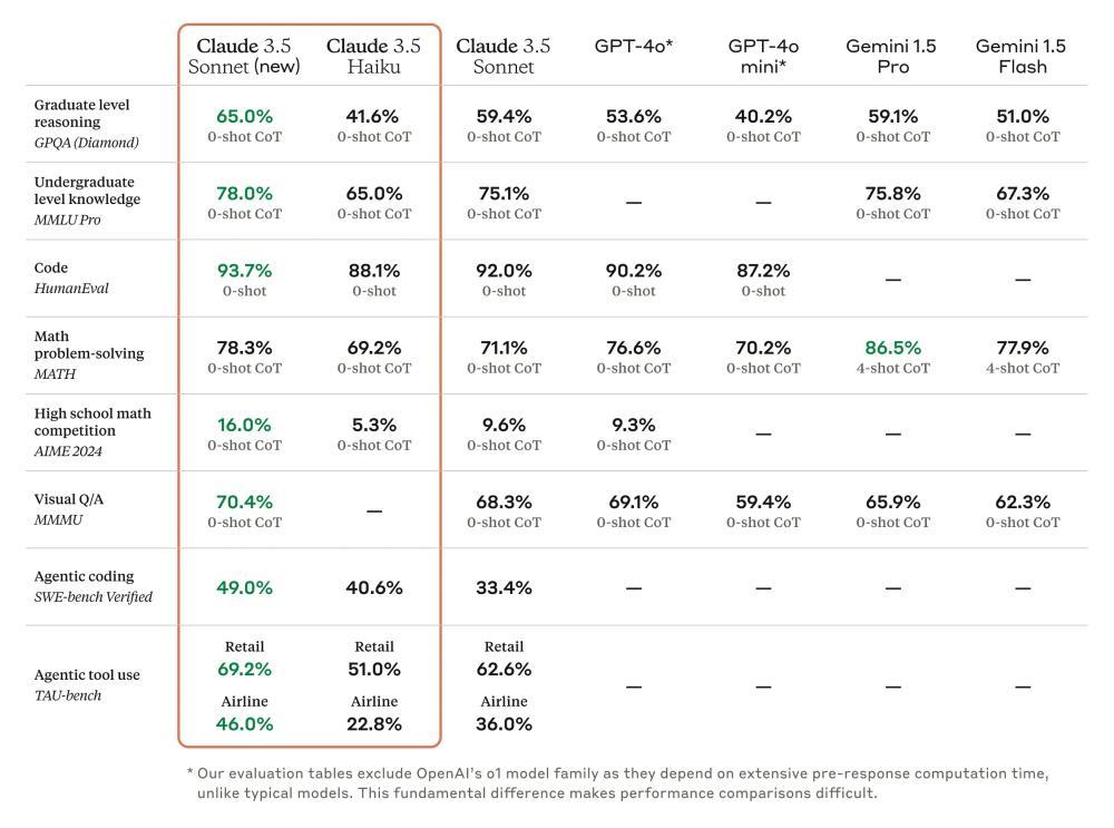 ● 2024年10月22日:Claude的Computer Use功能横空出世,AI不再局限于专用工具,而是能像人类一样“看见”屏幕并操作计算机,移动光标、点击按钮、输入文本,真正模拟人类与计算机的自然互动。这一能力的上线,使得Claude 3.5 Sonnet的Agentic工具使用评分整体来看,平均提升了一半以上。