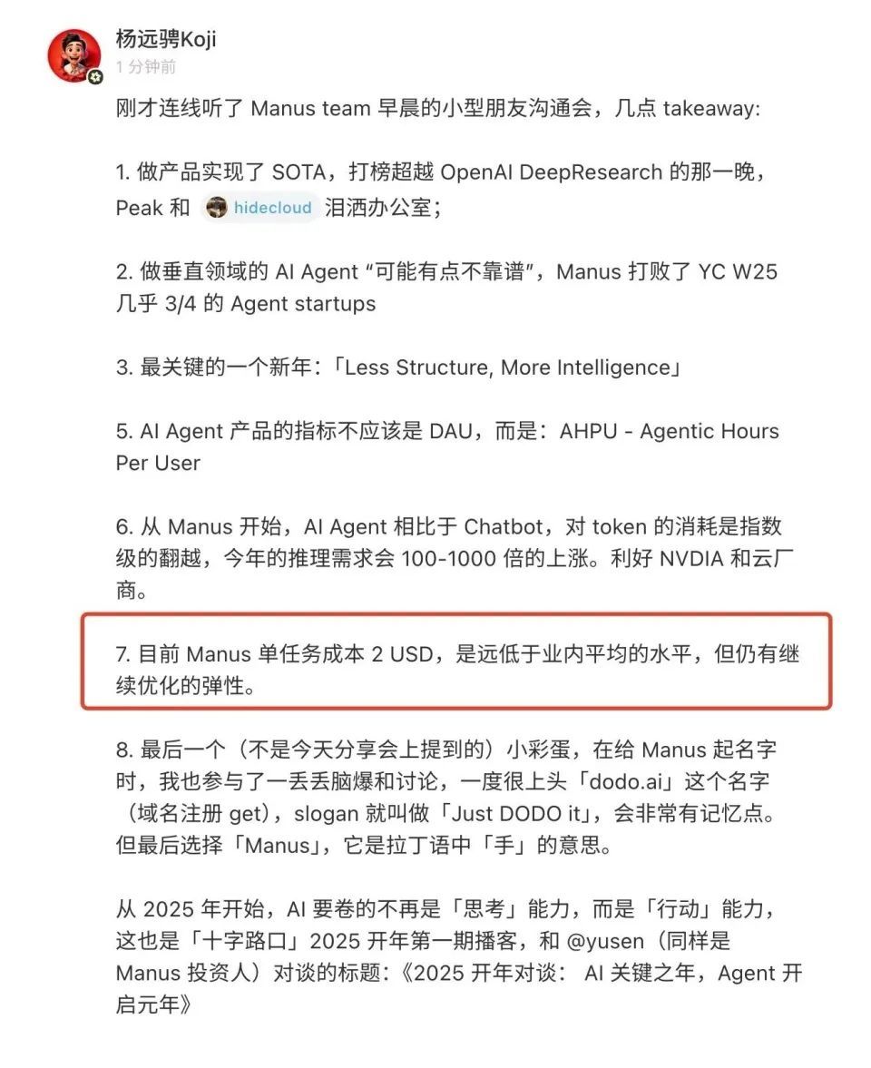 这也就是杨远骋Koji发布的据说来自Manus团队内部的“Less Structure, More Intelligence”理念。