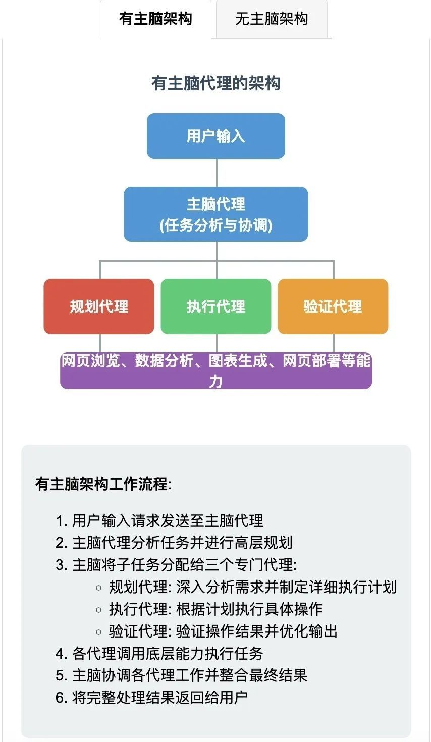 当然也有可能根本不需要主脑,以规划代理同时承担工作协调的能力。