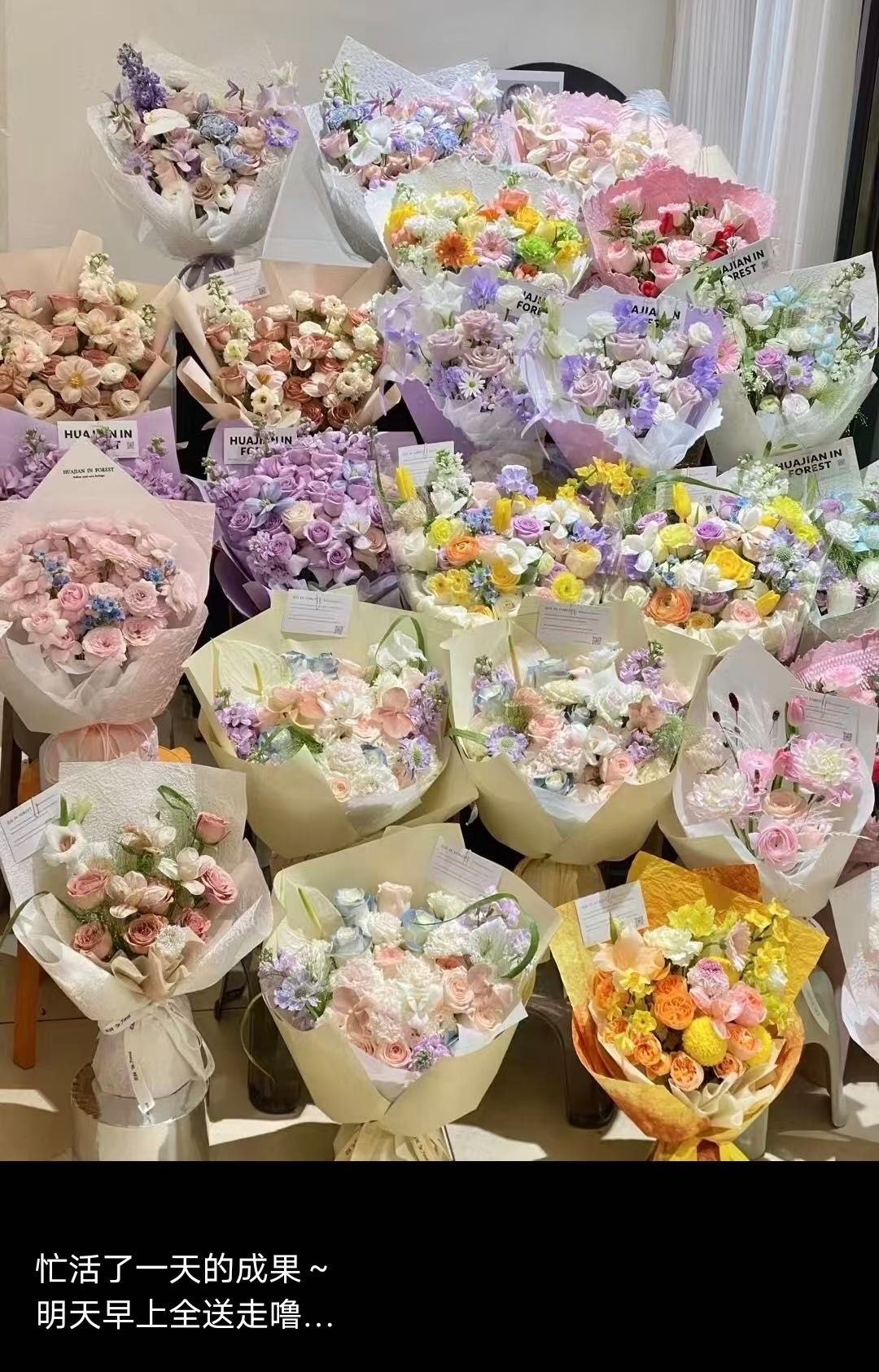 “有一个公司订单,他们需要四十多个大花束。手打花束来说,一个花艺师一天做七八束,就是会占用一整天的程度。”她透露,妇女节的团体订单比较多,小花束不费时,但数量很大。