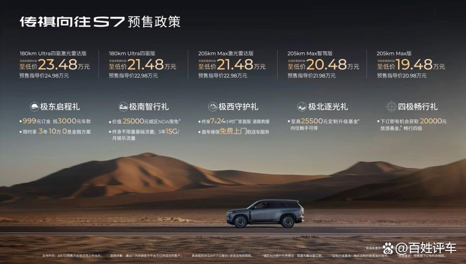 (传祺向往S7预售价格及政策)
