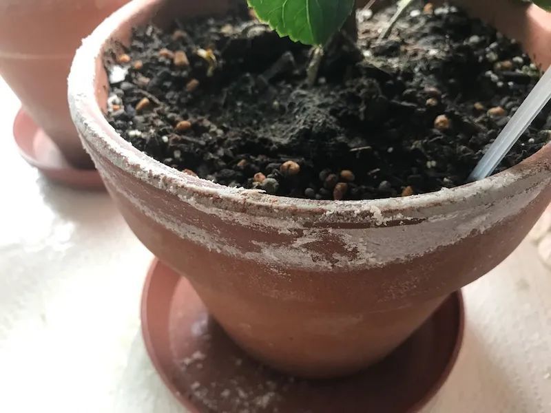 就是因为它的透气性、排水性太好了,也是和它本身的材质有关系,平常我们在盆土撒复合肥,或者是长期浇自来水,都容易导致盐碱物质沉积在容器表面,但有些花友就很喜欢这种陈旧的美感。