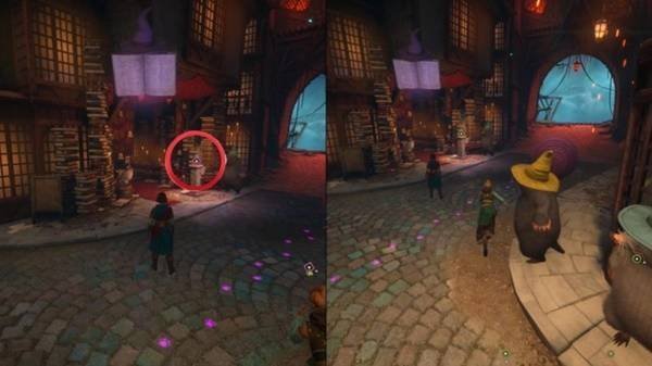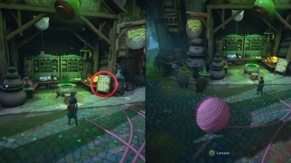 在药水店附近,有一个带有魔杖的帐篷。拿起魔杖,向你的朋友射击,直到对方变成椅子——然后坐在上面