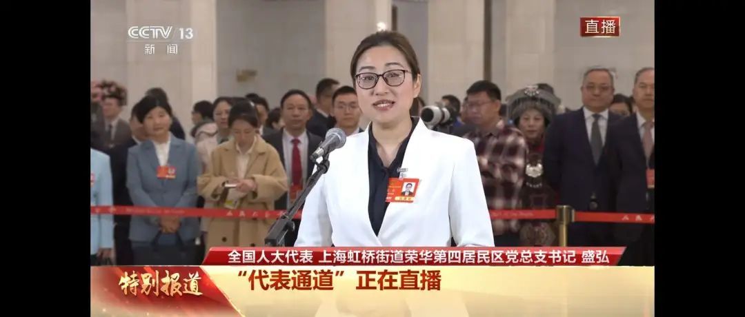 今天上午,十四届全国人大三次会议第二场“代表通道”集中采访活动在人民大会堂中央大厅举行。来自上海团的全国人大代表、长宁区虹桥街道古北荣华第四居民区党总支书记盛弘亮相代表通道。出生于1980年的她是一位“小巷总理”,在基层社区天天和居民群众打交道。基层工作的第14年,盛弘在代表通道上分享了在社区服务中如何践行“全过程人民民主”。