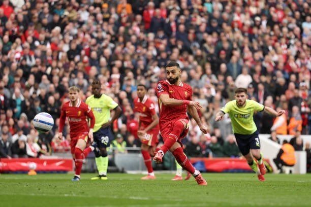 此役主场对阵南安普顿,萨拉赫在比赛第54分钟主罚点球破门,帮助利物浦2-1反超比分。