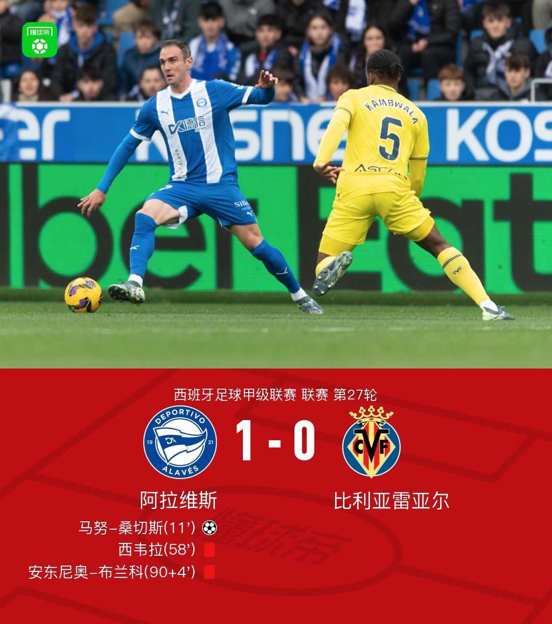 北京时间3月8日,西班牙足球甲级联赛第27轮,阿拉维斯主场迎战比利亚雷亚尔。比赛中,阿拉维斯凭借马努-桑切斯的进球取得领先。然而,阿拉维斯在比赛中遭遇不利,两名球员先后被红牌罚下,分别是西韦拉和安东尼奥-布兰科。尽管如此,阿拉维斯依然顽强守住了胜果,最终以1-0战胜比利亚雷亚尔。
