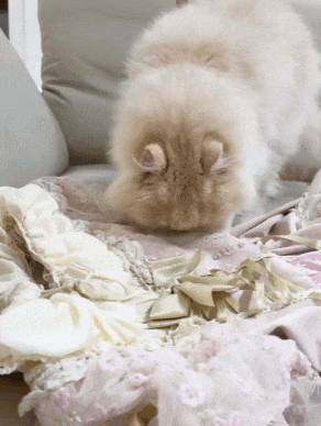当小猫们闻到带着熊味的衣服后,瞬间又不淡定了: