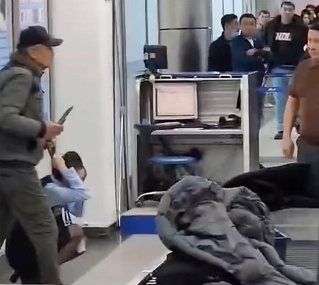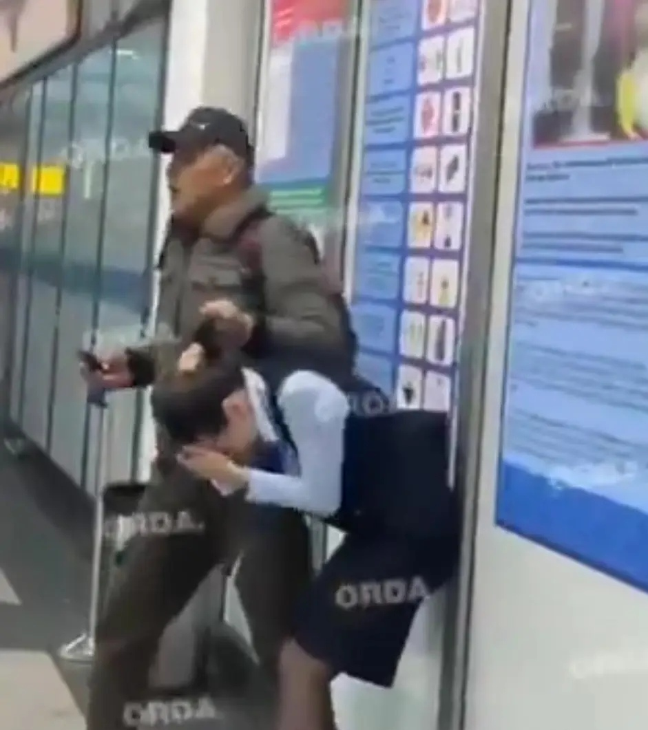 事情发生在哈萨克斯坦阿拉木图机场,当时一名戴棒球帽的男子以旅客身份进入国内航班安检区。