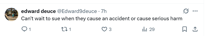 但也有网友对特斯拉的自动驾驶技术提出质疑。因为特斯拉长期以来一直将其FSD驾驶辅助系统相关事故的责任归咎于用户,称是车主没准备好接管驾驶。