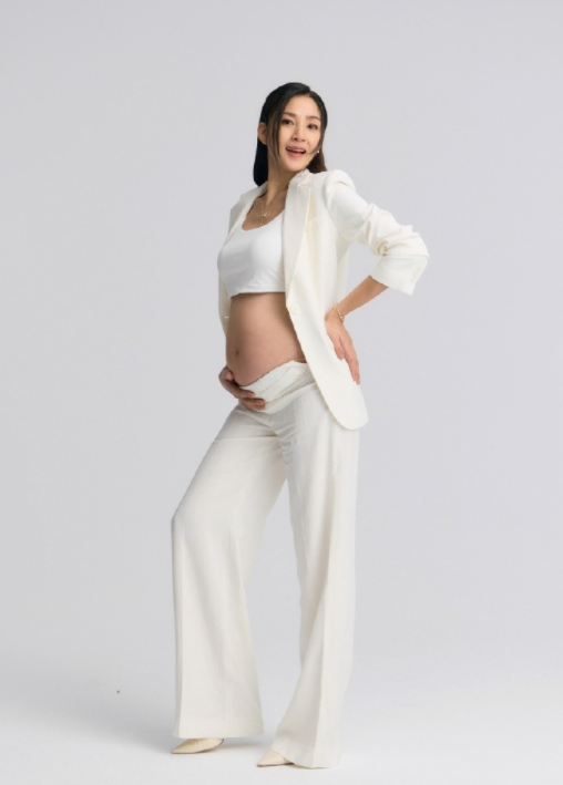 虽然孕肚已经圆滚滚,但四肢纤细,状态特别好。