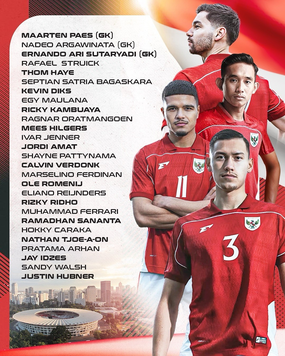 北京时间3月9日,印度尼西亚足协主席托希尔公布了3月印尼世预赛的初选名单,托希尔表示,本月三名归化球员奥代罗、迪恩-詹姆斯与佩鲁佩西三人正在办理归化手续。