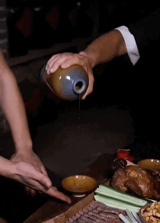 刚要再次满酒,客人就手盖住酒碗,示意自己吃好,该走了。