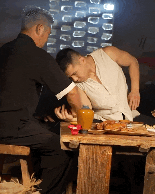 最开始纯粹是被他挨打吸引进来的,看着这位浑身肌肉的中年男子,因为一句话或者一个小动作,分分钟被叔叔、爷爷干到了桌子底下,觉得很有意思。