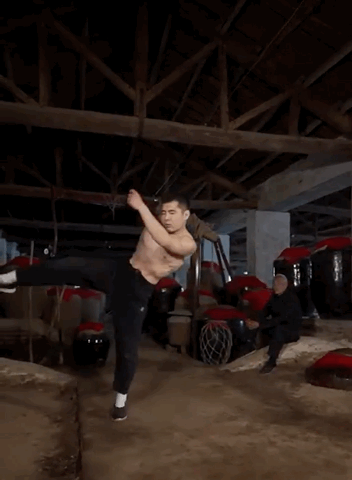 只见,长辈使出八极拳的铁山靠,博主瞬间被撞飞,摔坐在地上。