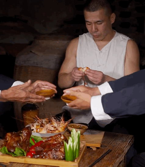 二叔看到后,拿筷子用力往下一压,博主夹菜的那只手就被摁在了桌子上。
