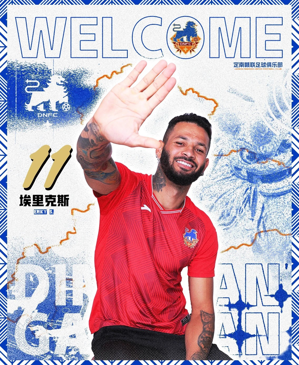 埃里克斯(Erikys da Silva Ferreira)1995年5月15日出生,身体素质好,技术全面,是一名灵巧的巴西籍职业球员,熟悉亚洲联赛、中甲联赛,2023赛季曾效力黑龙江冰城,单赛季攻入14球,入选中甲最佳阵容。2024赛季上半赛季效力于韩国天安城,下半赛季回归中甲联赛效力于石家庄功夫,2025赛季埃里克斯转会定南赣联,将身穿11号球衣为定南赣联效力。