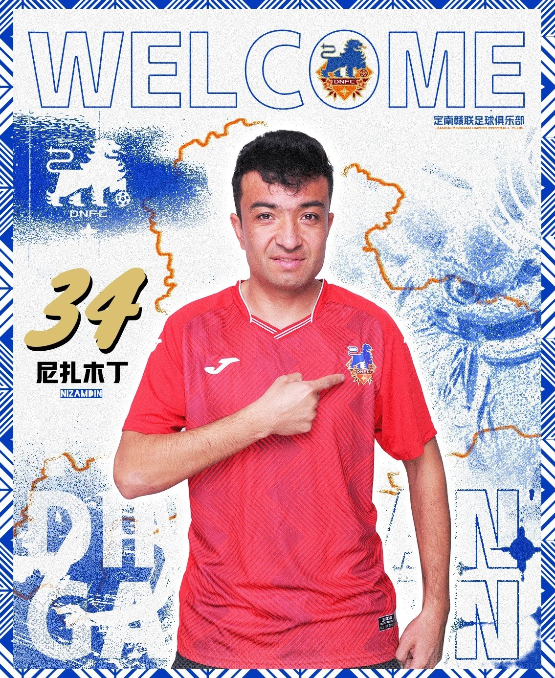 尼扎木丁,1991年4月23日出生,场上司职边后卫。尼扎木丁身体强壮,对抗能力强,传中精准,曾效力于内蒙古中优、北京人和、黑龙江冰城、深圳新鹏城,尼扎木丁参加职业联赛超过百场,参加顶级联赛超过50场,经验丰富。2025赛季尼扎木丁租借加盟,将身穿34号球衣为定南赣联效力。