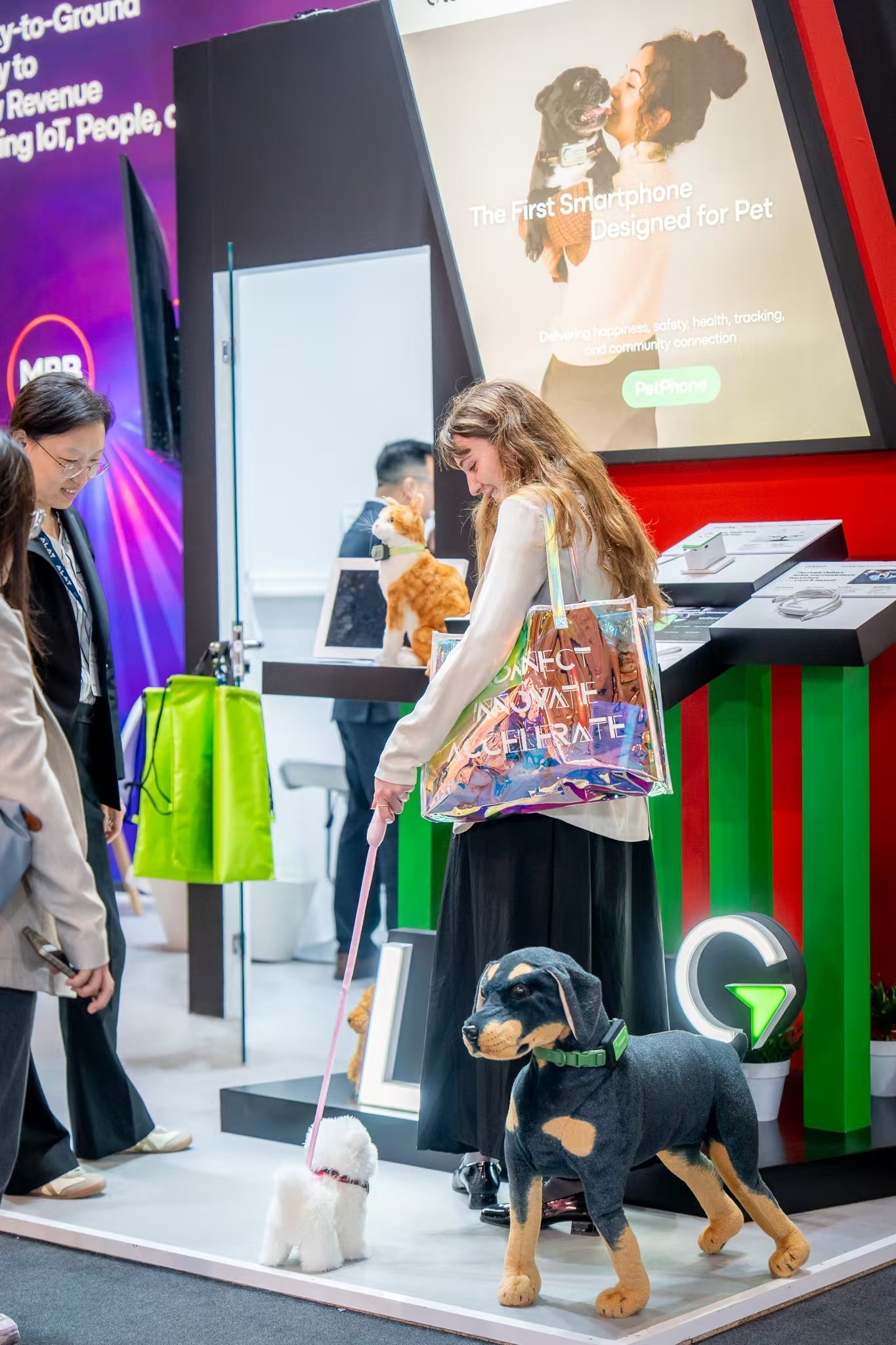 PetPhone支持 eSIM 和云SIM,去除了实体SIM,使设备防水等级和抗老化等级大大提高。同时还解决了跨国频繁换卡问题,可以帮助运营商在宠物市场放号推广。在MWC2025大会上,已有很多来自全球各地的运营商对PetPhone产生了浓厚兴趣。“样机都被抢光了。”卢彪说。