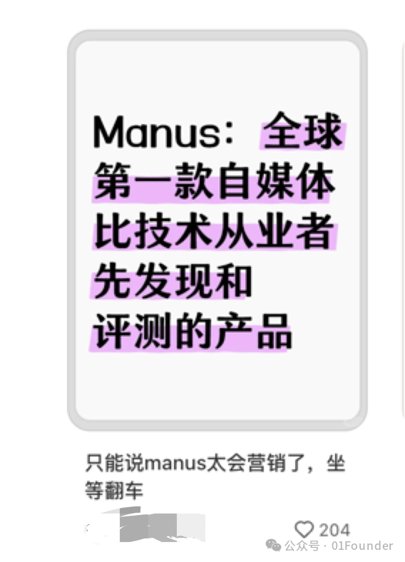 同一时期,我在社交平台上发现了大量类似内容。一位自称行业专家的博主在小红书发布讽刺帖,称Manus是“自媒体比技术从业者先发现的产品”。