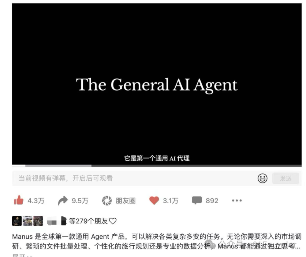 3月5日晚,一段关于Manus的宣传视频在视频号“潜云思维”上线。
