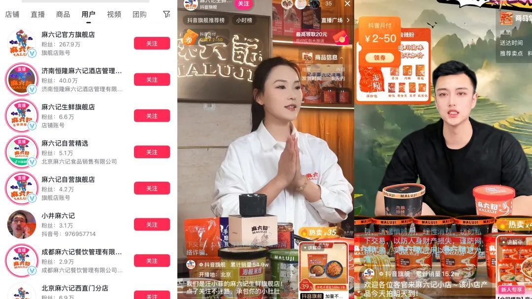 复盘其快速翻盘的原因,麻六记面对危机的迅速反应不可谓不迅速:当品牌最大的IP张兰与汪小菲的抖音账号被封禁后不到一天,麻六记约30余家直营门店便迅速开播,以店播矩阵组织起一场保卫战。