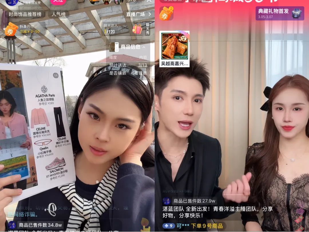 2月8日,在抖音账号被封禁后,张兰与汪小菲兵分两路开启了自救:汪小菲以抓马风格一面宣布与张兰断绝母子关系,一面猛烈控诉抖音对他的封禁;张兰则一力将舆论带来的流量转变为扩张的野心,先后在视频号、搜狐视频等多平台开播,还在抖音创建了新账号@湛兰321 俏满潮 ,旗下主播化身“青春天团”组团带货。