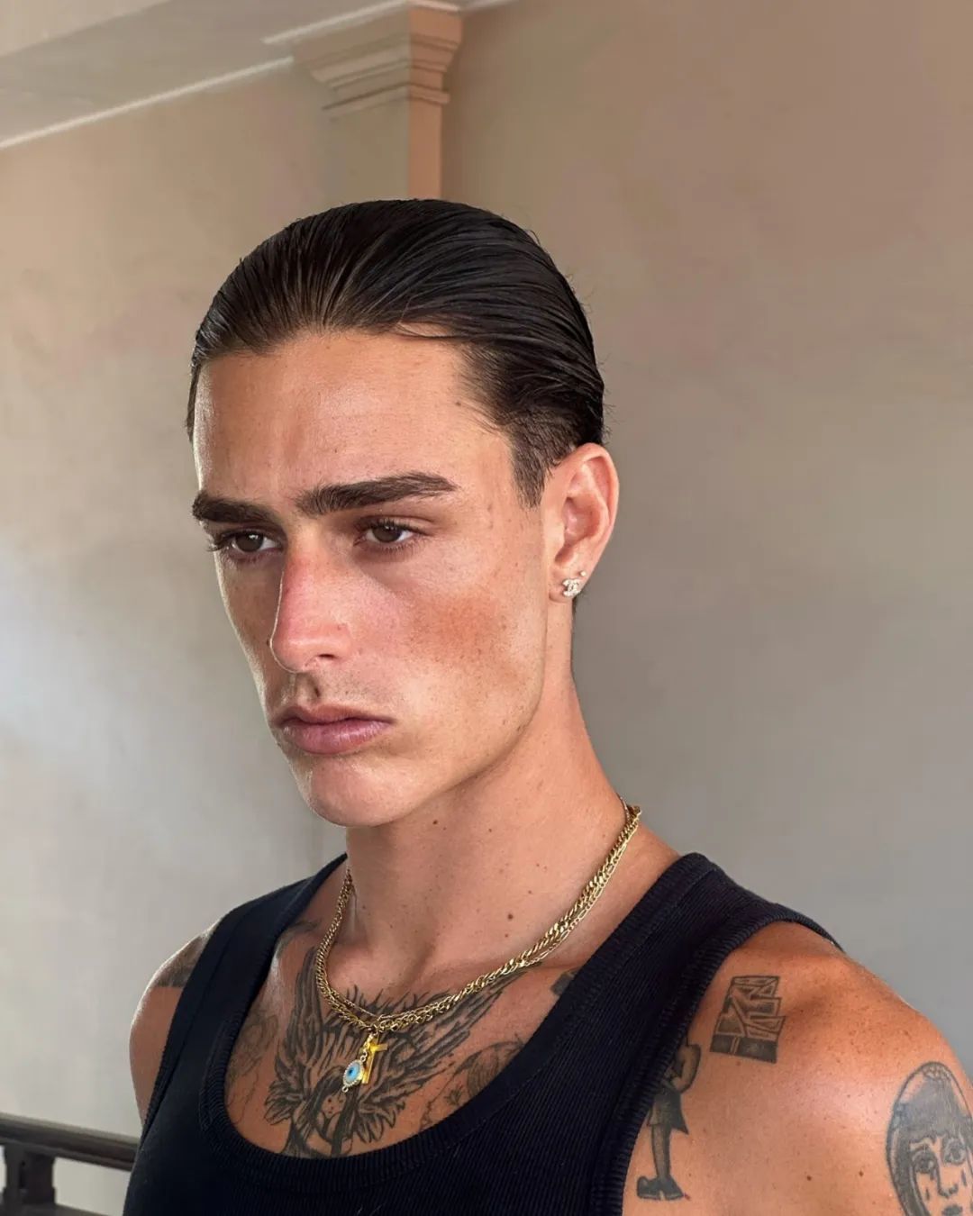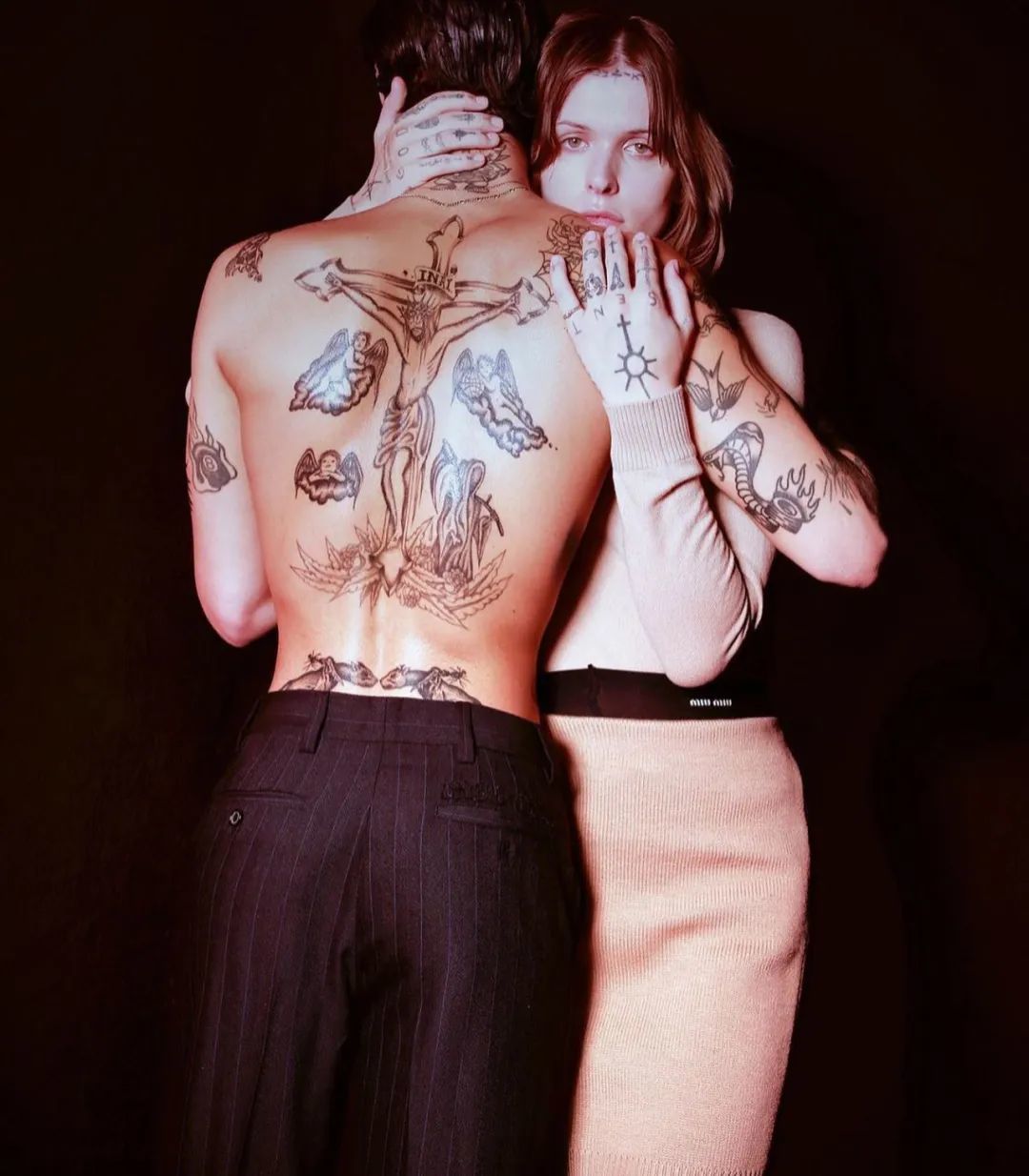 在一组时尚大片中,她翻牌了一位男模特 Noa Papadopoulos(诺阿·帕帕多普洛斯)。