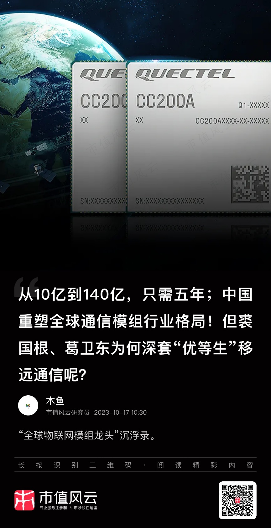 移远通信是全球通信模组的老大,风云君也曾写文章分析过,股价至今已经涨上天了。