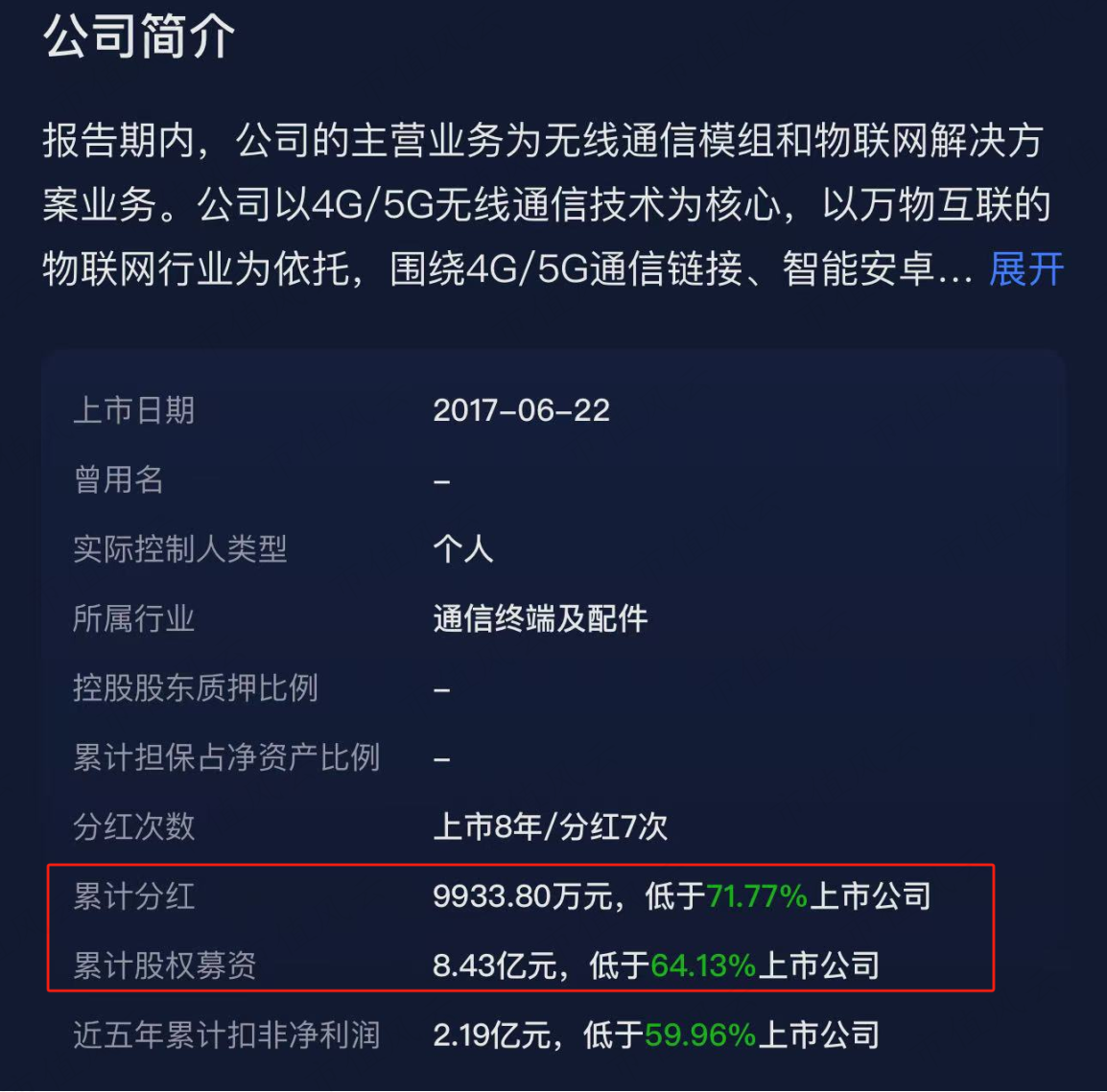 因此,美格智能也难有余力去大手笔分红,上市8年累计募资8.43亿,但累计分红还未过亿。