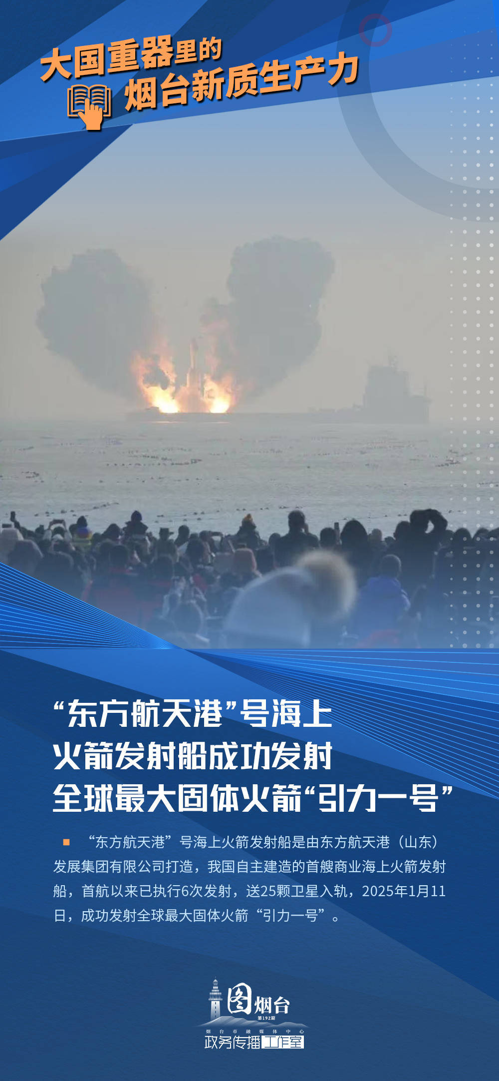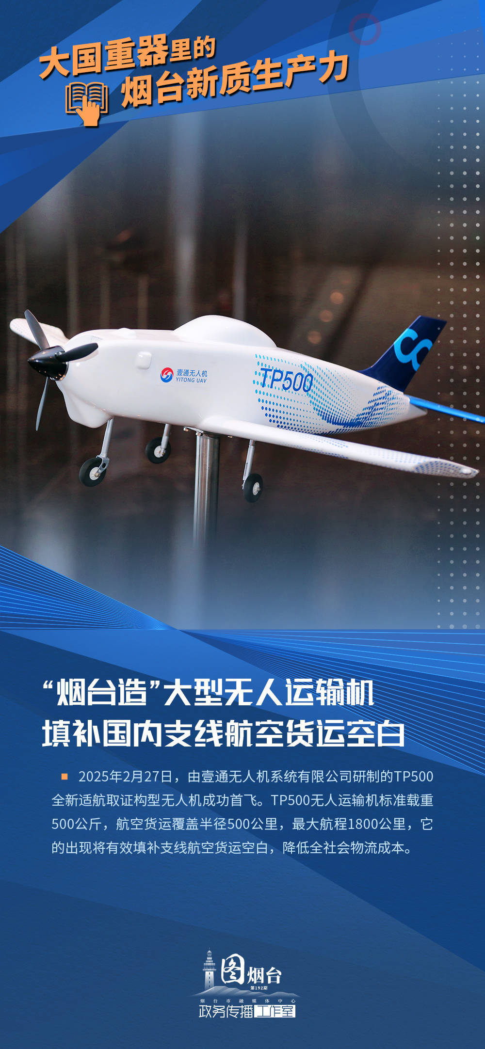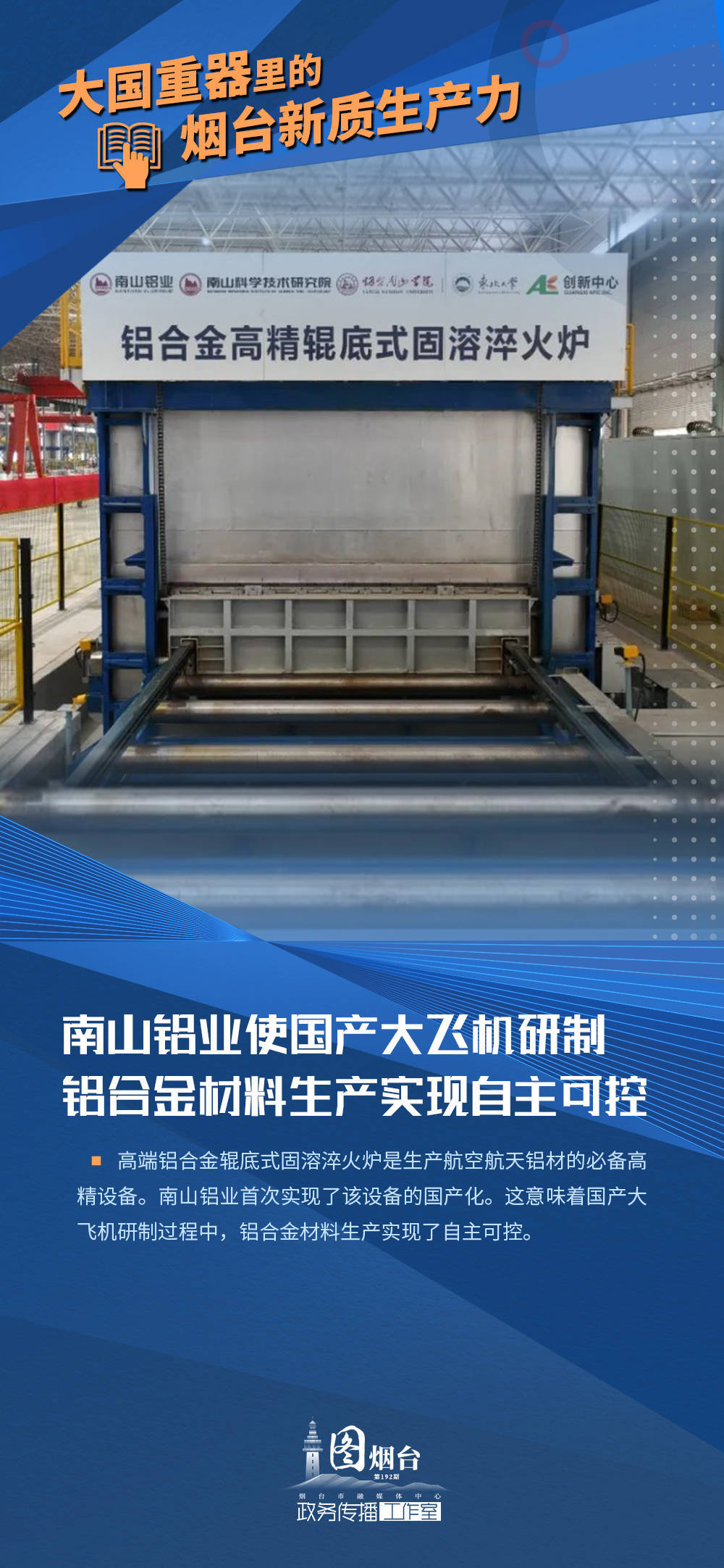 “烟台造”大型无人运输机填补国内支线航空货运空白;南山铝业使国产大飞机研制铝合金材料生产实现自主可控;“东方航天港”号海上火箭发射船成功发射全球最大固体火箭“引力一号”;烟台持久钟表解决时频同步领域“卡脖子”技术……