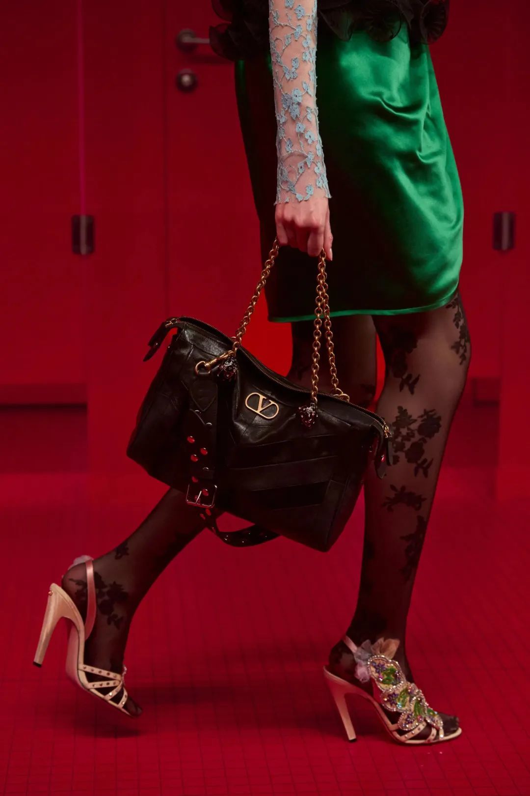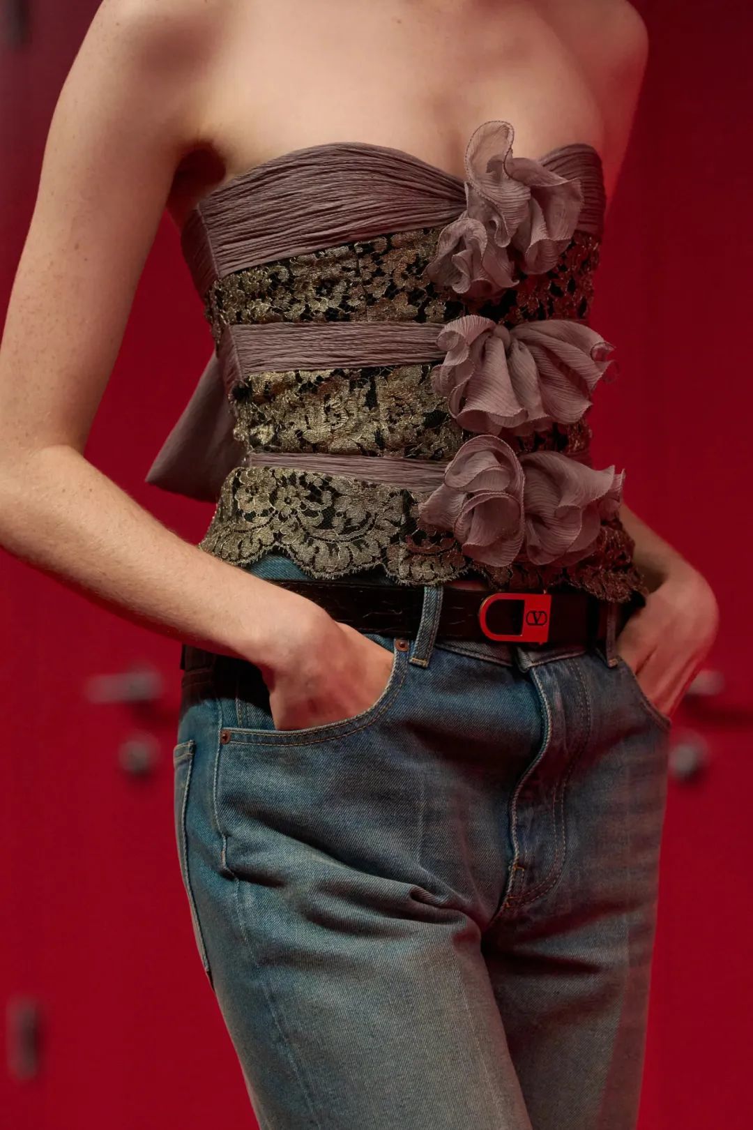 当模特们推开隔断门逐一登场,向观众展示Valentino的新装,这一私密空间彻底被剧场化。