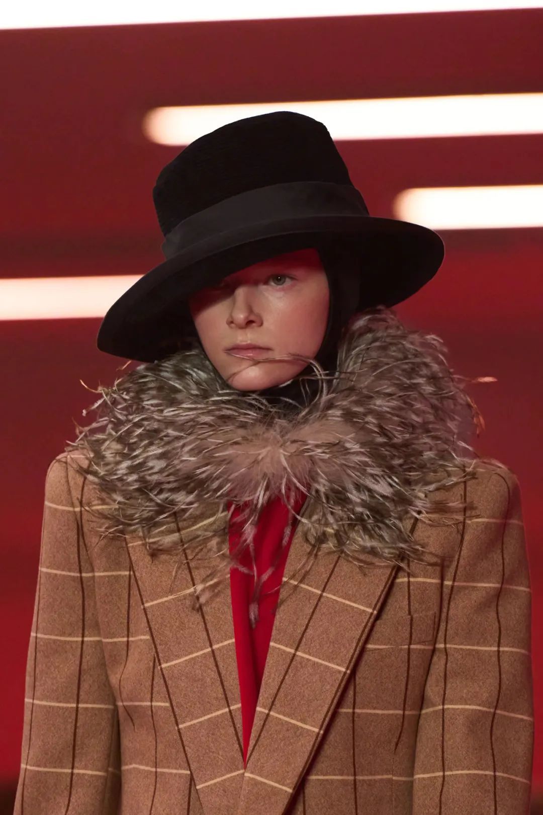 Alessandro Michele将Valentino 2025秋冬成衣命名为「亲密关系的元戏剧」(LE MÉTA-THÉÂTRE DES INTIMITÉS)。这是一个需要诠释的主题,Michele给出了一个存在主义的答案:亲密关系的价值不在于发现「真实自我」,而在于通过持续的表演行为,创造关于「我是谁」的动态答案。他提示我们,或许根本就不存在需要捍卫的「真实自我」,有的只是在不同「剧场」中不断重构的表演。这种认知既是对本质主义的祛魅,也为探讨性别边界、身份转化的实践开辟了新可能(这也是Michele一直关心的议题)。