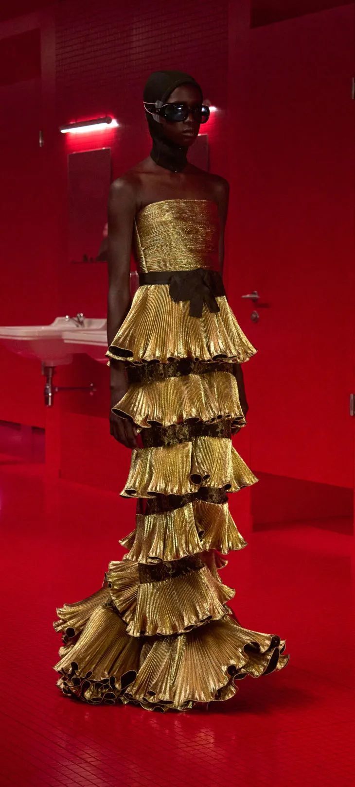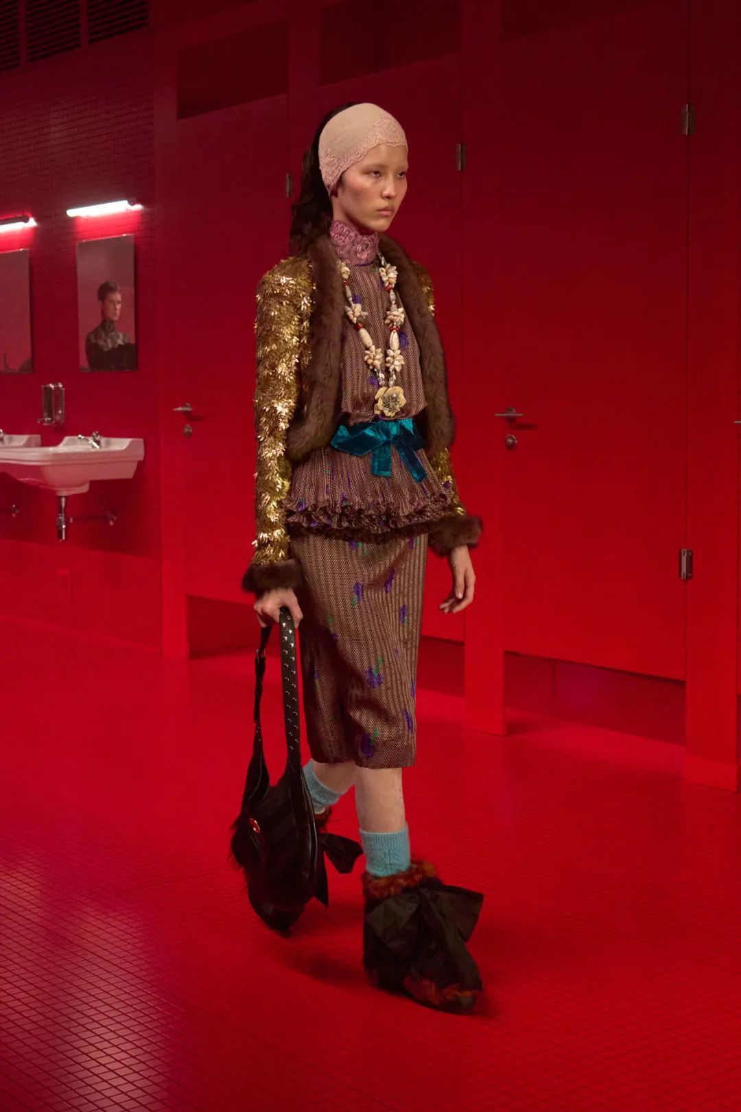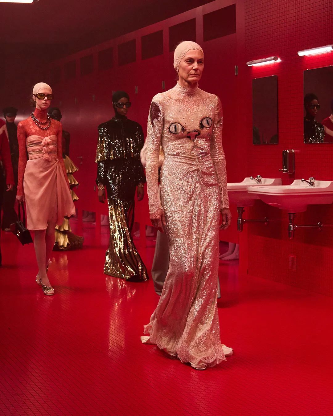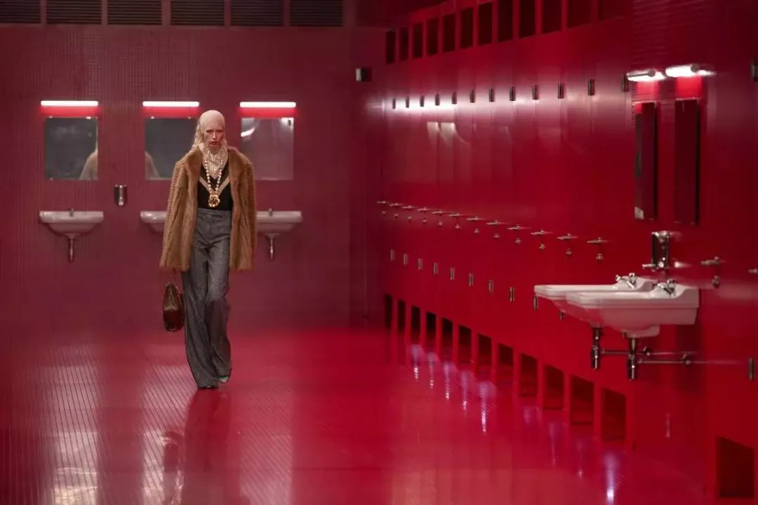 Alessandro Michele将卫生间这一私密空间彻底剧场化,打造了这个时装月最为震撼的秀场景观。